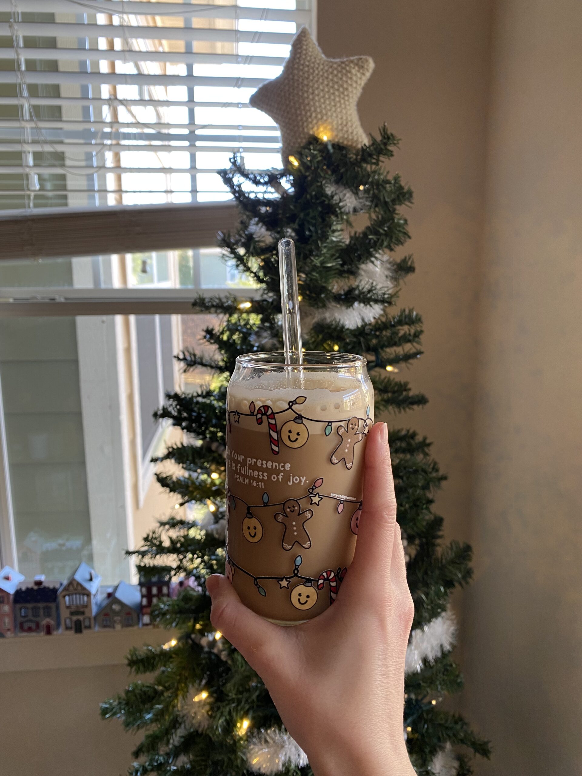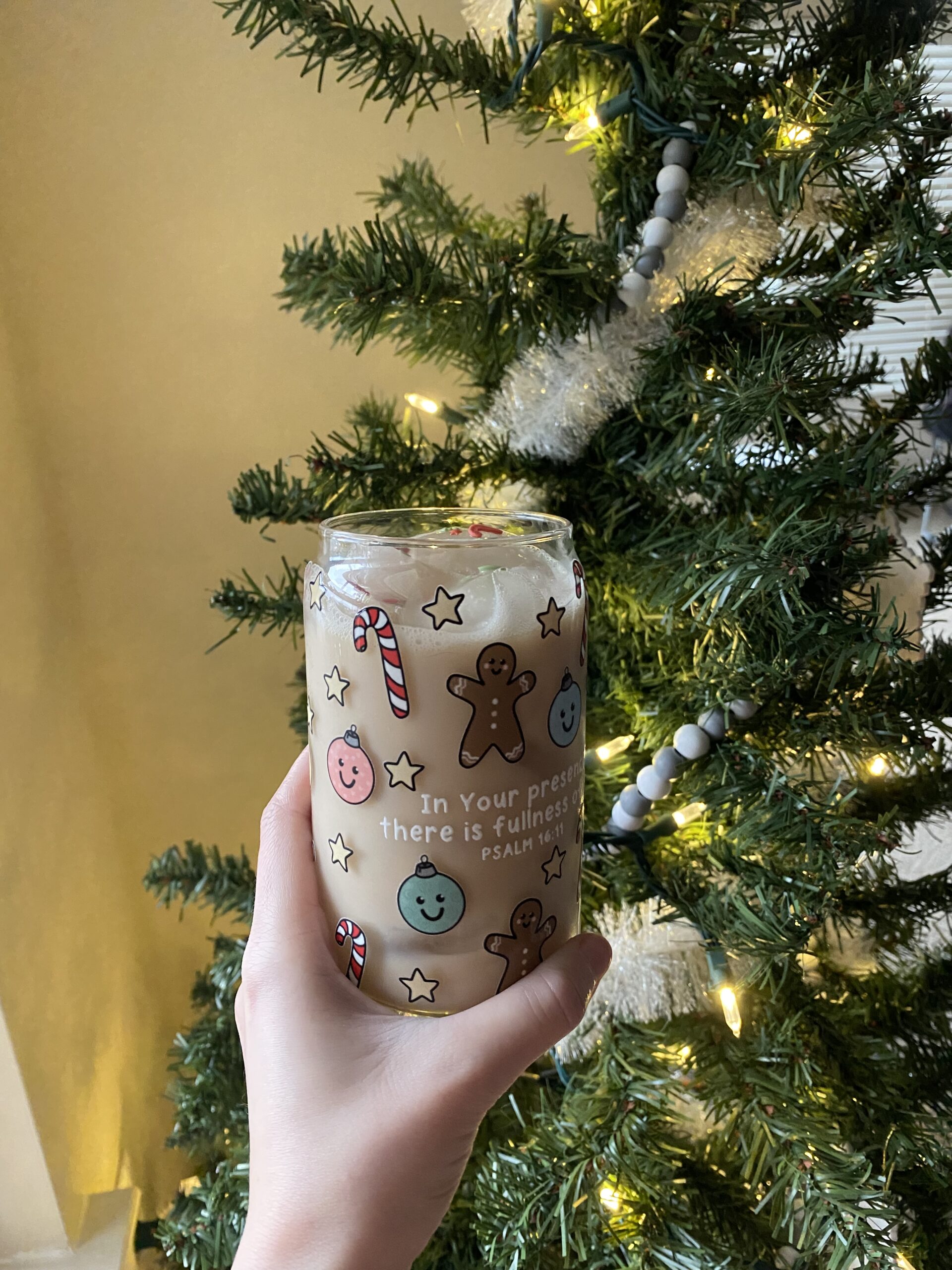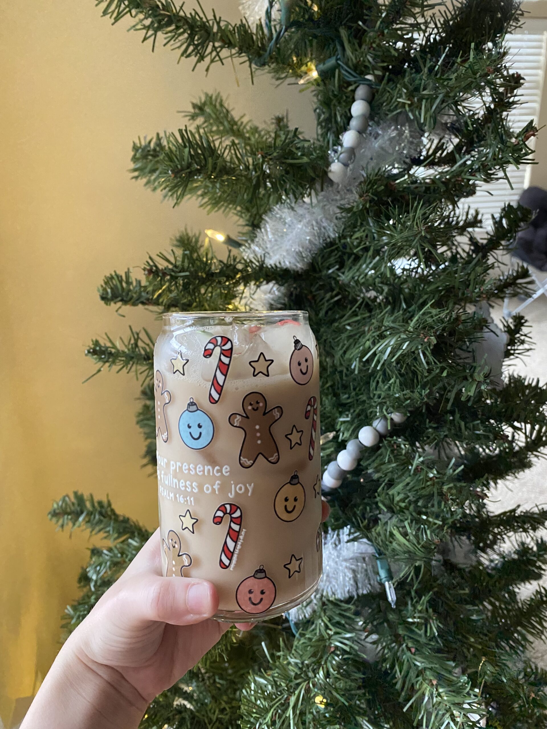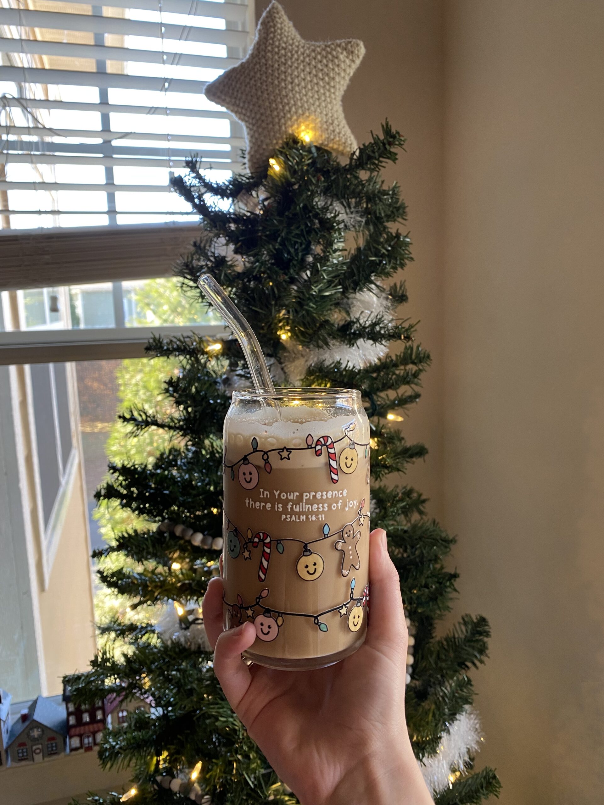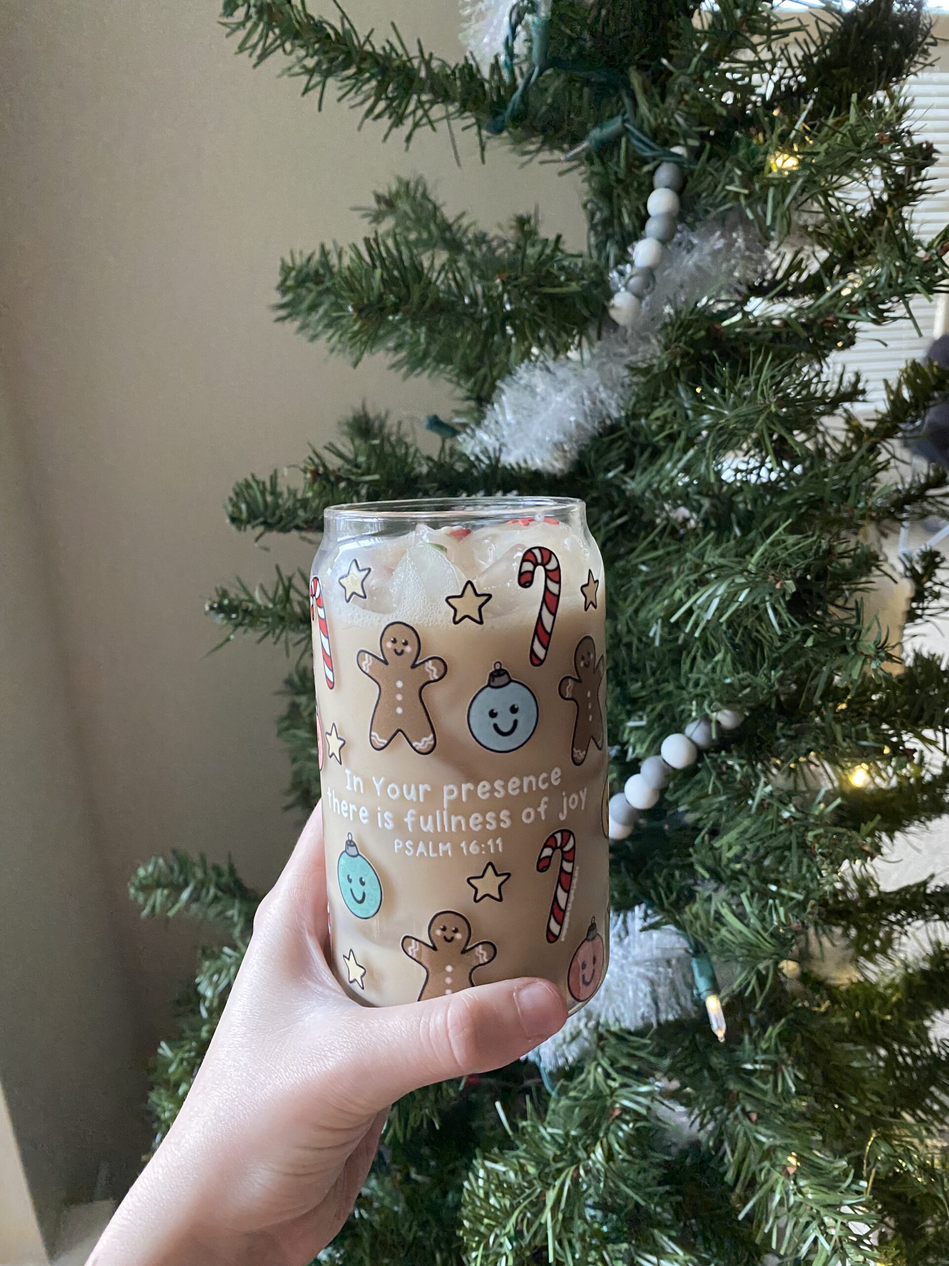 Psalm 16:11 says, “You make known to me the path of life; in Your presence there is fullness of joy; at Your right hand are pleasures forevermore.” Truly, it’s in God’s presence that we find real, full joy. This glass is a reminder of just that this holiday season!