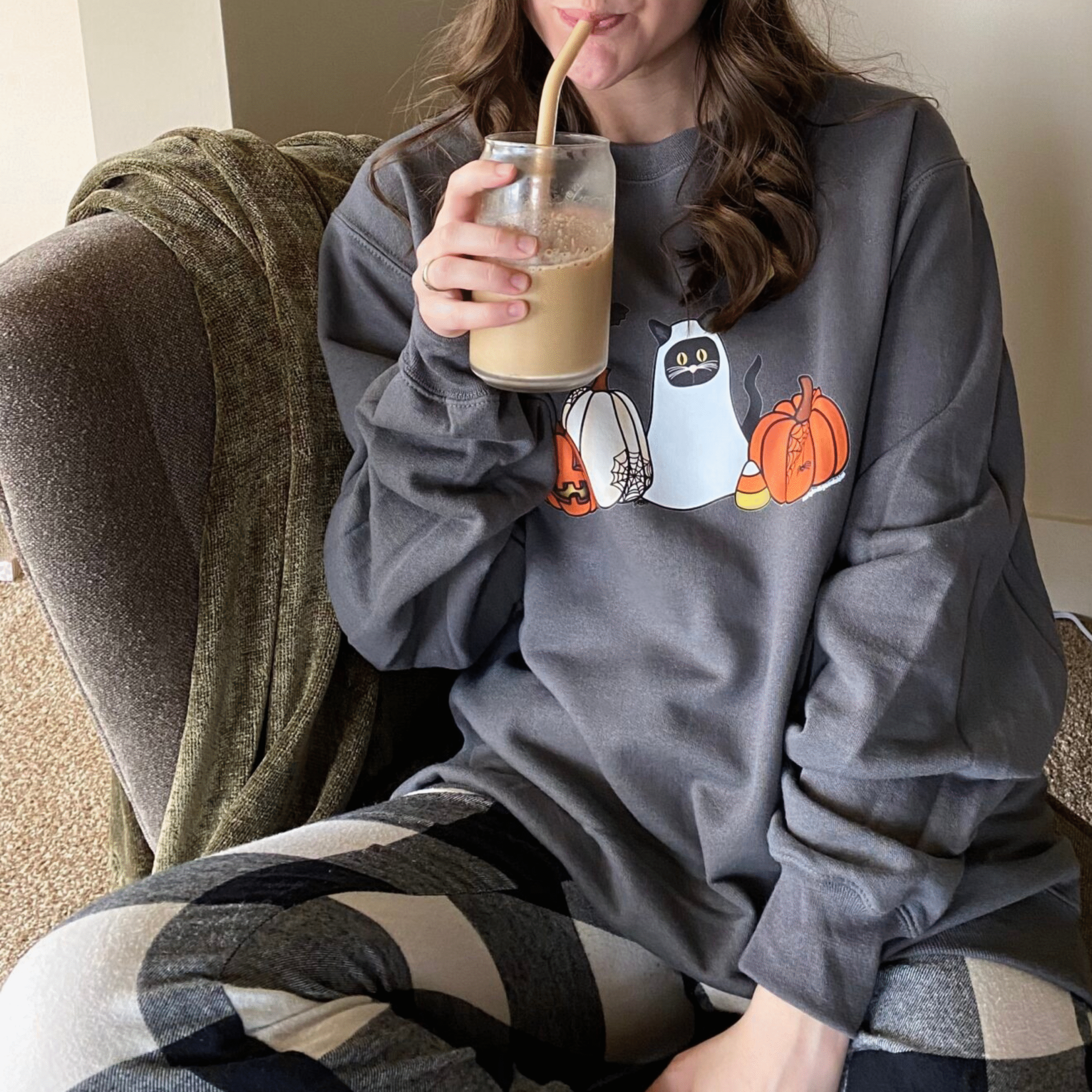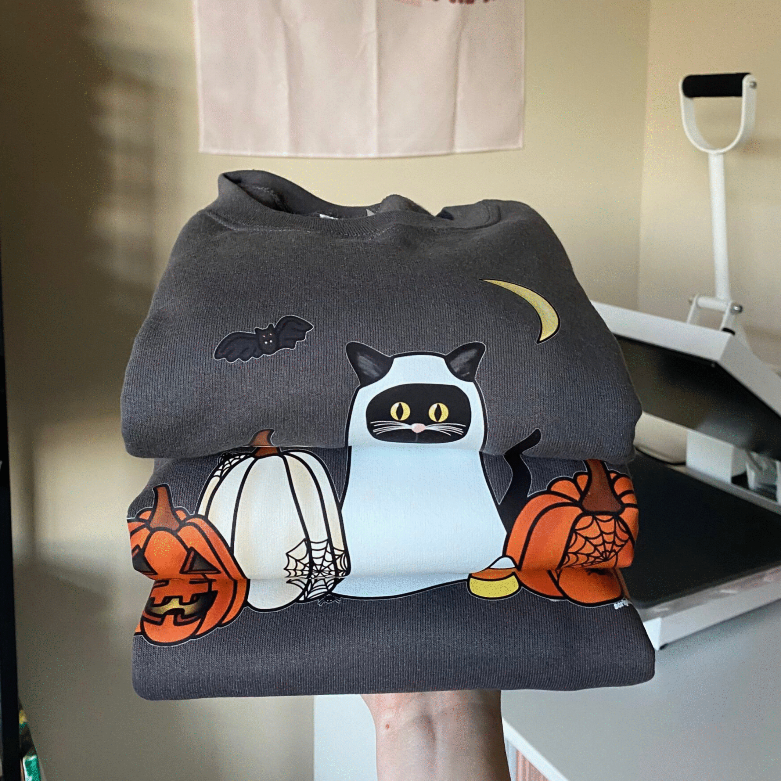 Celebrate Halloween and the fall season with this cozy ghost cat crewneck sweatshirt!